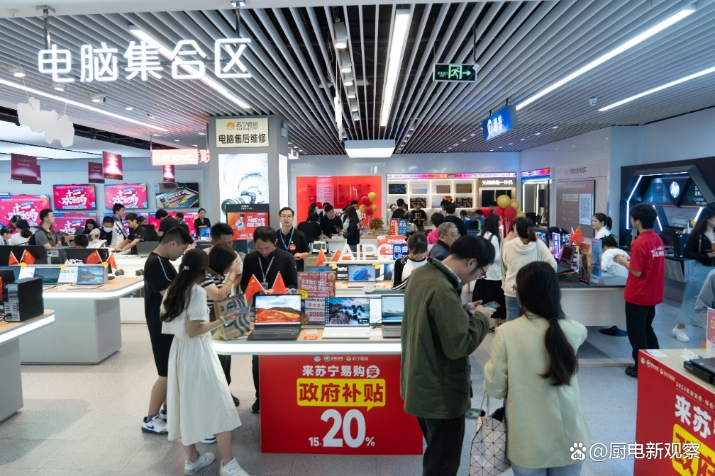 10月7日,根据苏宁易购(以下简称“苏宁”)公布的数据,“十一”假期期间,苏宁全国门店客流同比提升超过200%,以旧换新订单同比增长132%。其中,家电大件功能升级持续加速,立柜式空调、超薄油烟机、嵌入式冰箱销售同比分别增长85%、113%、271%。