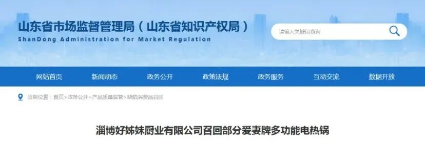 据山东省市场监管局网站消息,10月29日,淄博好姊妹厨业有限公司按照《消费品召回管理暂行规定》的要求,主动向山东省市场监督管理局报告了召回计划,将自即日起,召回2024年10月7日至2024年10月10日期间制造的部分爱妻牌HZMDG-30型多功能电热锅,涉及数量为30台。